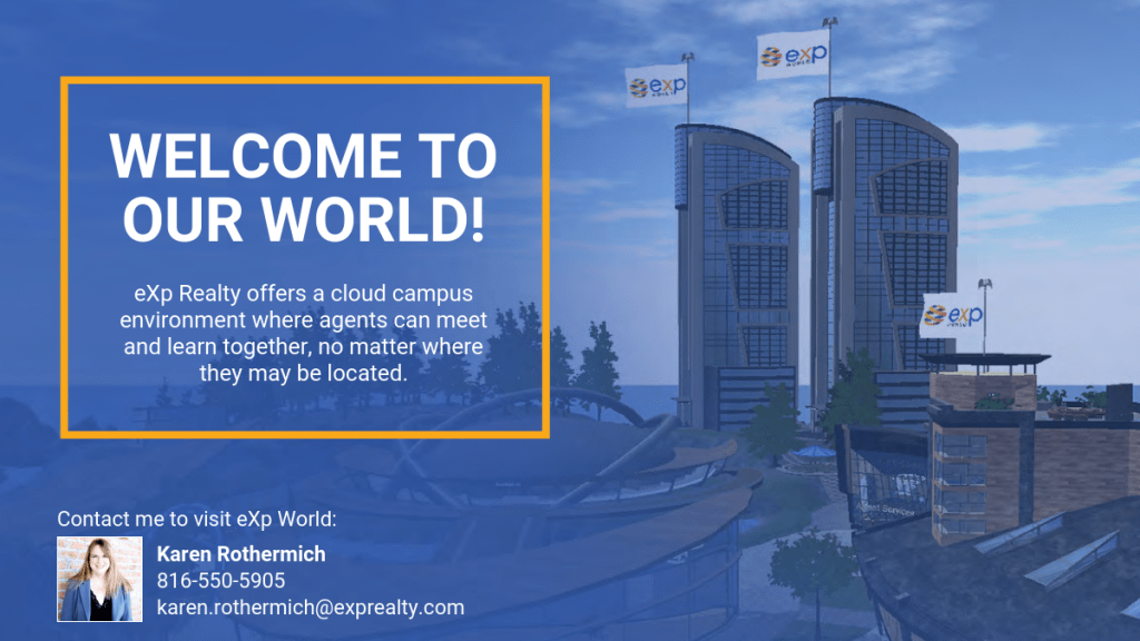 Click https://karenrothermich.exprealty.careers/ to see just some of the many, many benefits of joining eXp Realty. Contact me today at karen.rothermich@exprealty.com or 816-550-5905.